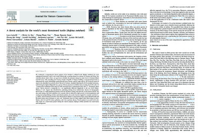 Turtle Sanctuary is committed to ensuring the survival of the Yangtze Giant Softshell Turtle (Rafetus swinhoei) in the wild. Since 2019, our organization has been leading a research program dedicated to this species, initiated through the collection of data on its geographic distribution and ecology within the river systems of northern Vietnam. This work is based on the rigorous implementation of structured interviews, combined with modeling analyses aimed at identifying the habitats most likely to be occupied by R. swinhoei within Vietnam.