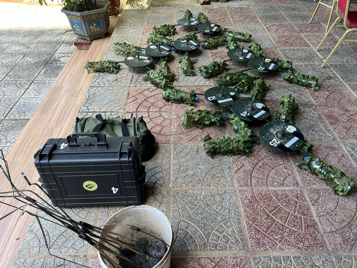 Le dispositif est composé d’une structure en aluminium et plaque composite ronde, assemblée avec des vis et écrous en acier inoxydable, et maintenue à flot par trois bouteilles en plastique vides de 1,5 litre. L’équipement photographique comprend une caméra trap qui est positionnée à environ 25 cm au-dessus de l’eau avec une inclinaison de 25° pour optimiser la vue de l’appât et de son environnement. Différents types d’appâts odorants sont placés dans des sachets en maille de nylon pour disperser l’odeur tout en empêchant leur consommation, et sont renouvelés régulièrement.